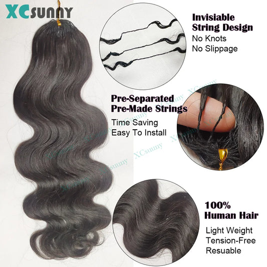 Body Wave Crochet Human Hair Knotless Invisible Crochet Human Hair Extensions With String In The Middle Pre Separated